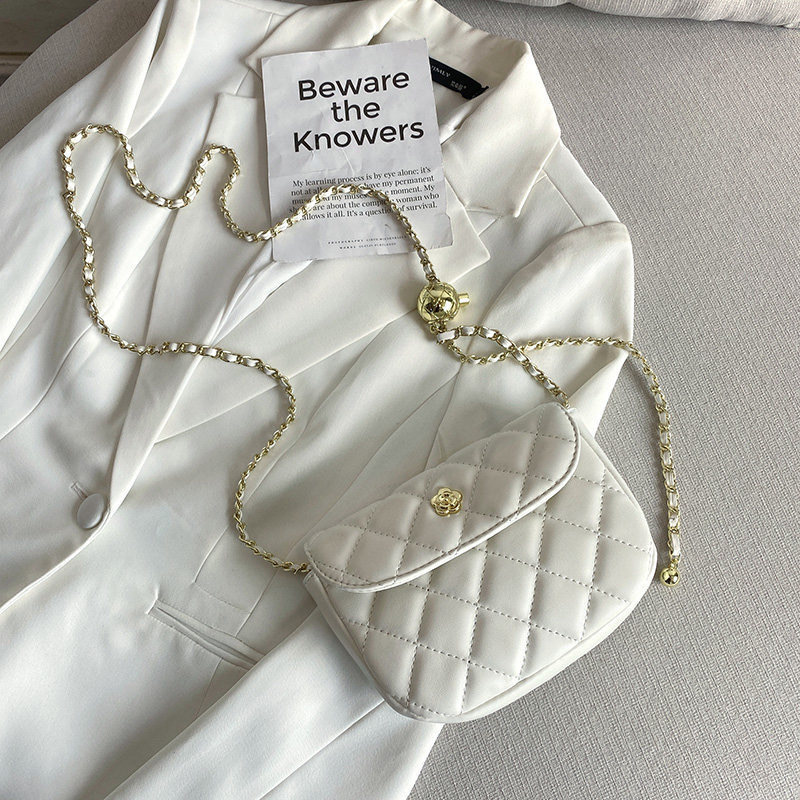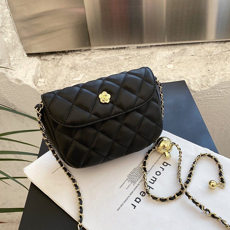 25分鐘前優雅時尚‧經典菱格繡線高級牛皮精緻質感金色花朵配飾小香風鏈條金球單肩小方包 - 一組入