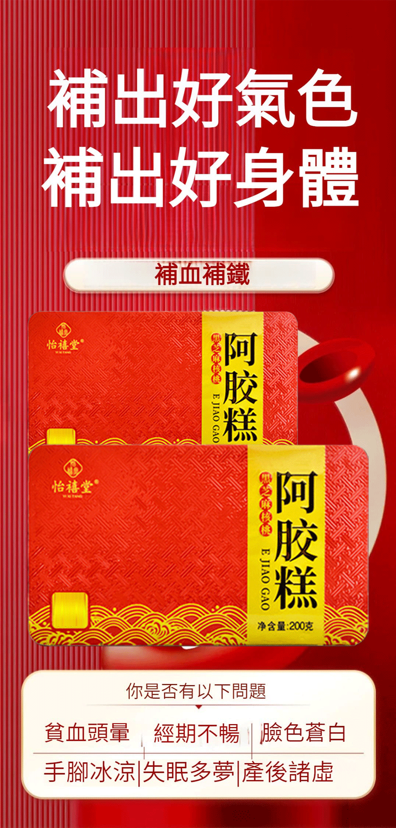 5分鐘前東阿正品阿膠糕獨立包裝,養顔+補血+元氣滿滿+活力滿滿+青春少女改善營養性貧血免疫調節 - 【最多人選擇】買二送二-四入組 NT$1198