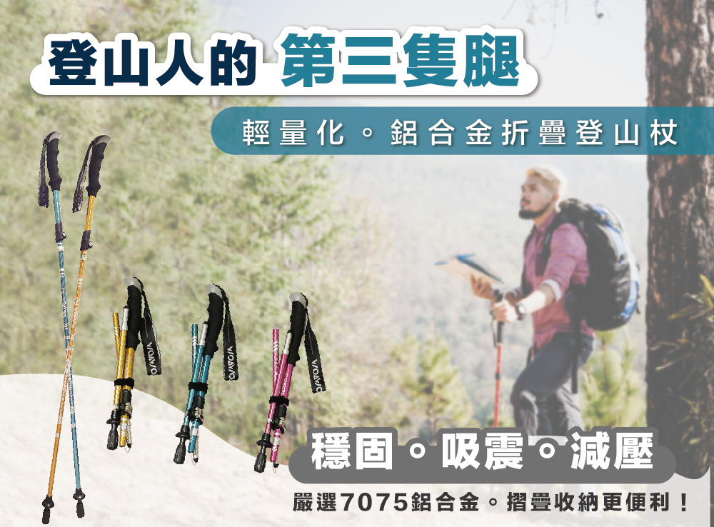 5分鐘前嚴選7075鋁合金登山杖 重量僅290g!輕便好攜帶 好的登山杖不只幫助減輕上半身重量 更能減緩膝關節、腳踝的衝擊! 讓你的登山旅途更加健康舒適! - 2支優惠價1599