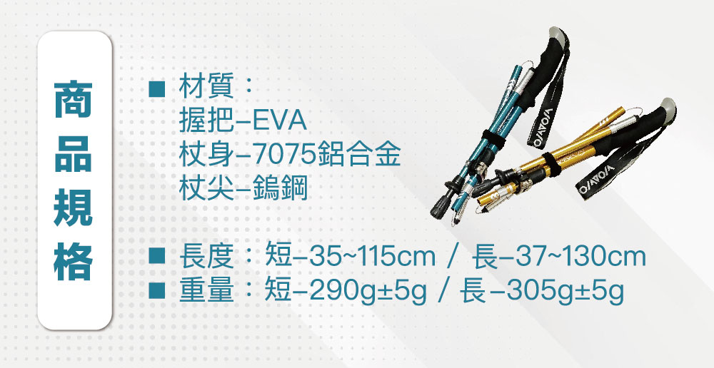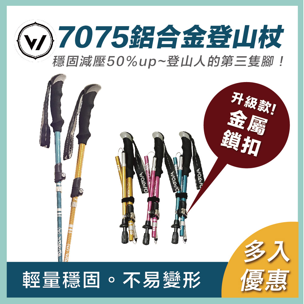 半小時前嚴選7075鋁合金登山杖 重量僅290g!輕便好攜帶 好的登山杖不只幫助減輕上半身重量 更能減緩膝關節、腳踝的衝擊! 讓你的登山旅途更加健康舒適! - 2支優惠價1599