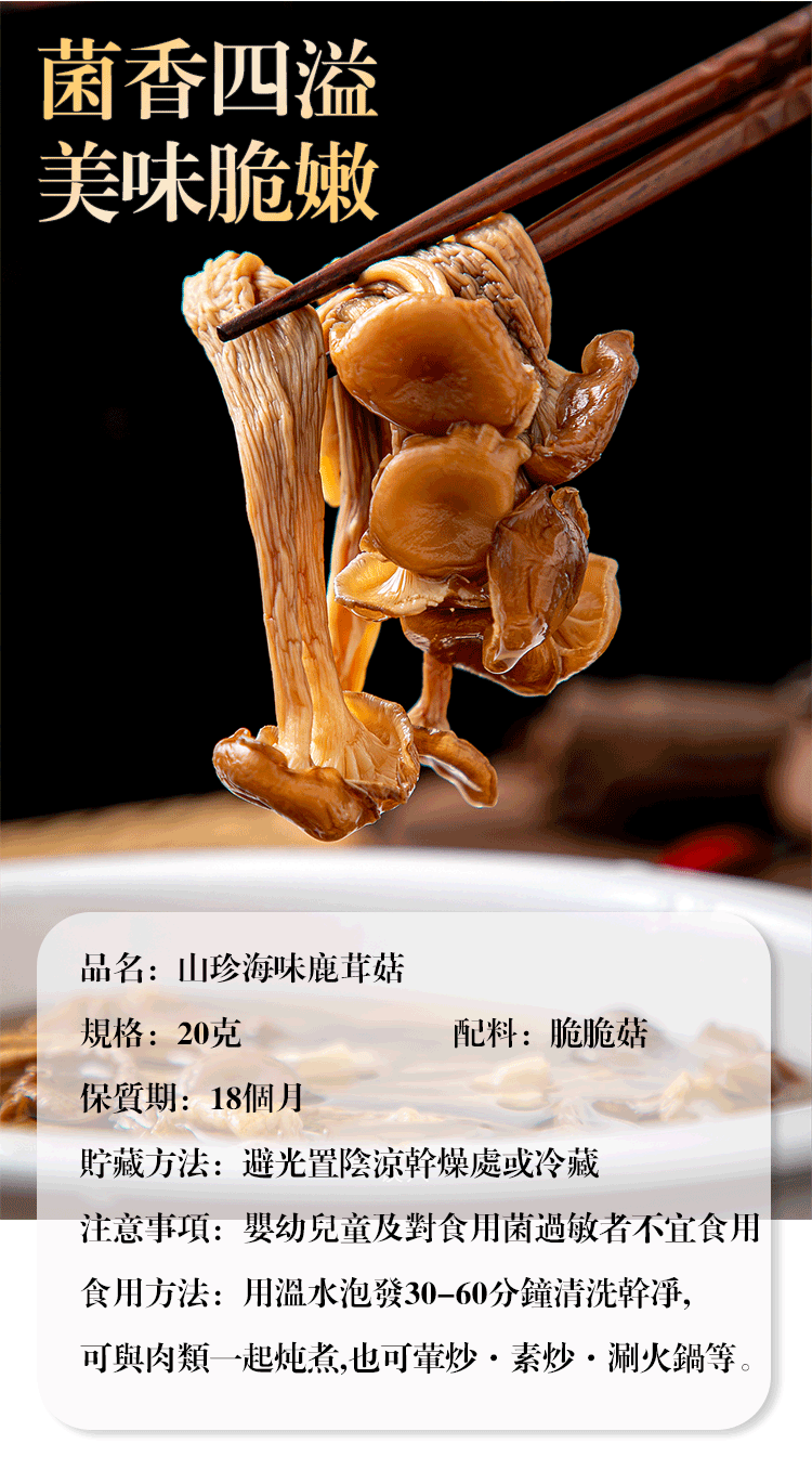 半小時前 【煲湯炒菜下飯必備】山珍海味鹿茸菇 #高山食材 #滋補養生 - 5入組-NT$998