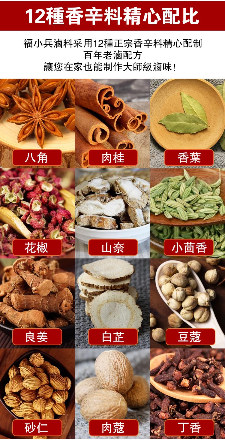 15分鐘前【限時搶購】秘製鹵料包 有了這個秘製滷料包,想吃什麼就滷什麼!百年老店獨家秘製配方,自己在家做,乾淨又衛生,味道比外面賣的還好吃~十八味秘制鹵肉料包 - 3包(30袋)NT$998