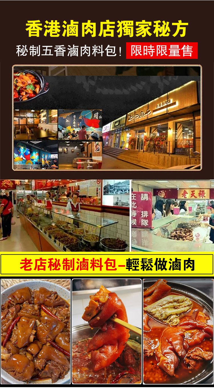 4分鐘前【限時搶購】秘製鹵料包 有了這個秘製滷料包,想吃什麼就滷什麼!百年老店獨家秘製配方,自己在家做,乾淨又衛生,味道比外面賣的還好吃~十八味秘制鹵肉料包 - 3包(30袋)NT$998