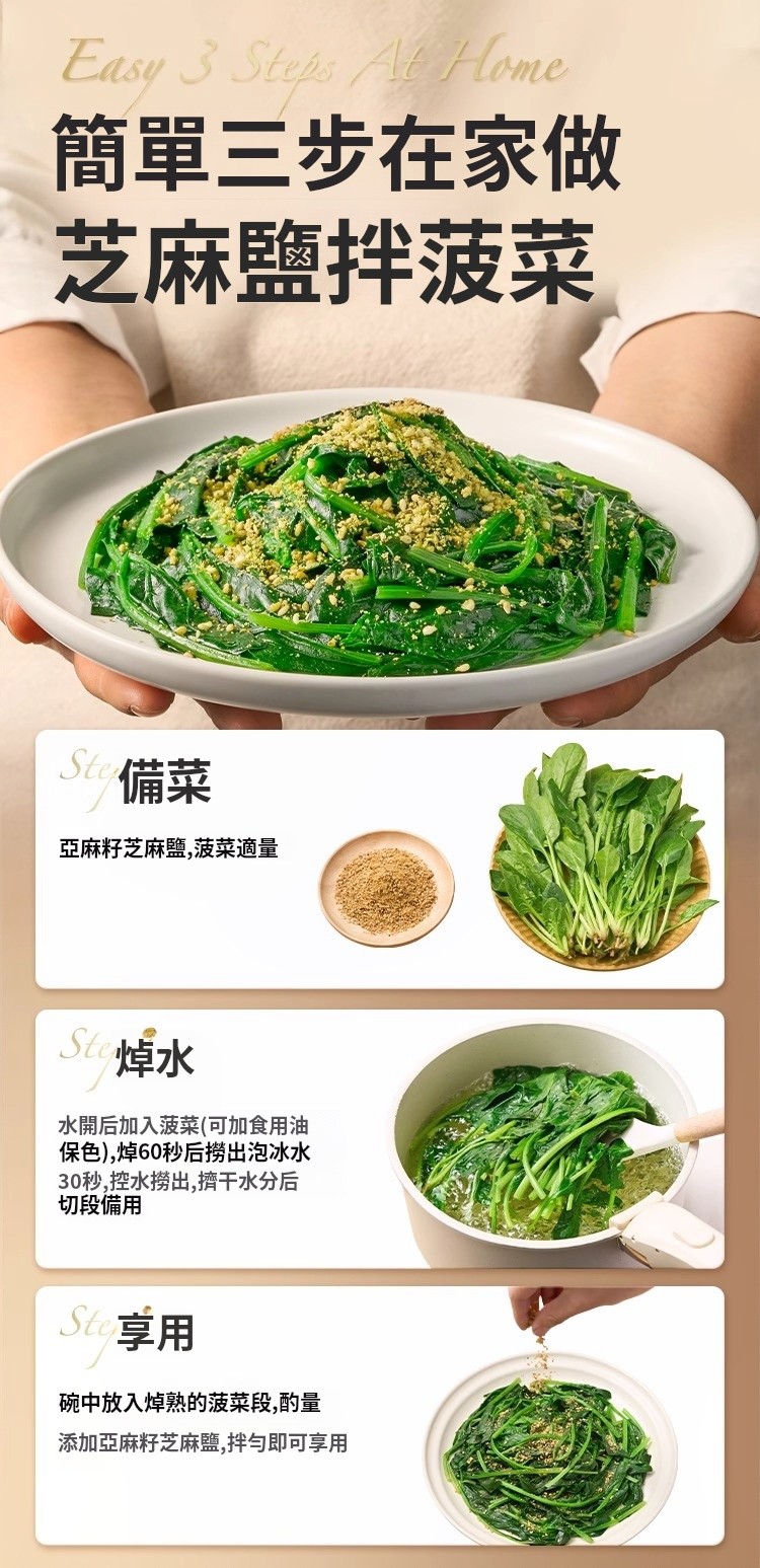 15分鐘前【熱銷】亞麻籽芝麻鹽 减肥人士必備 水煮菜的靈魂 多重口感 增香调味 轻食控卡 0負擔0添加!! - 【新品嘗鮮】買一送二 3入組 NT$998