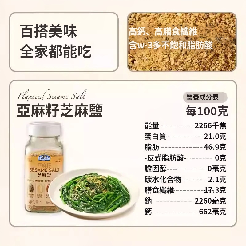 2分鐘前【熱銷】亞麻籽芝麻鹽 减肥人士必備 水煮菜的靈魂 多重口感 增香调味 轻食控卡 0負擔0添加!! - 【新品嘗鮮】買一送二 3入組 NT$998