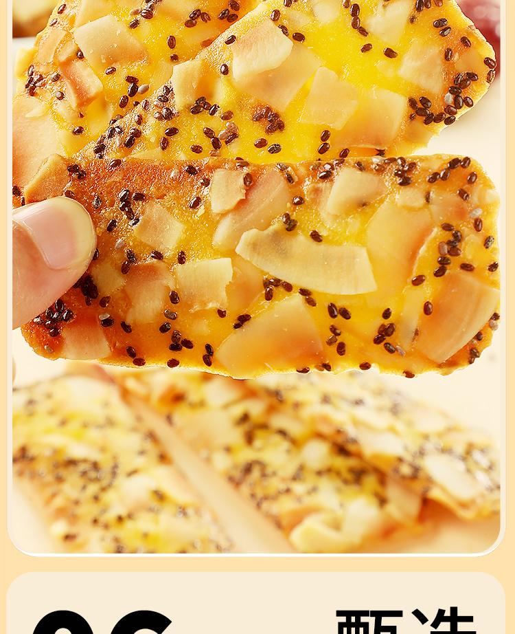 融合奇亞籽之高纖維、富含不飽和脂肪酸,紅棗補血益氣,山藥健脾益胃,椰子營養豐富。此薄脆美味可口,是健康零食佳選。無論代餐或平日享用,皆能為你提供充足能量,滋補身心。